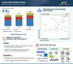 August, 19, 2025--米マーケッツアンドマーケッツ社(MarketsandMarkets)によると、レーザ加工市場は2025年に71億7000万ドルと評価され、2032年までに118億9000万ドルに達し、予測期間中に8.5%のCAGRを記録すると見込まれている。マイクロエレクトロニクス・半導体、自動車、医療・ライフサイエンス、航空宇宙、建築・建設などの主要産業全体でレーザ加工が積極的に採用されているため、この市場は成長を遂げている。。