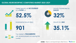 August, 5, 2025, London--Technavio Researchによると、ニューロモーフィックコンピューティング市場は、2024~2029年にかけてCAGR 52.5%で成長すると予想されている。この期間中、市場も9億100万米ドルの成長を示すと見られている。