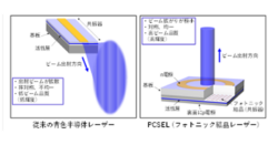 PCSEL は、従来の半導体レーザに比べて、高い出力と指向性等を兼ね備えた光源である。青色波長領域で動作する PCSEL は、金属の光吸収率が高いため、銅やアルミニウムなどの精密加工に適しており、次世代の製造技術を支える光源として注目されている。