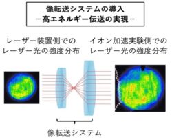 QST関西研の桐山博光グループリーダーを中心としたレーザ開発チームは、超高強度レーザJ-KAREN-Pのレーザパルス伝送部に像転送システムを開発・導入し、レーザ装置出口でのレーザ強度分布を劣化させずにターゲット手前の集光ミラーに伝送することに成功し、集光条件の大幅な改善とともに、伝送可能なレーザパルスエネルギーを従来比150 %に引き上げた高強度レーザ照射を実現した。