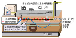 さらに、空洞をモデル化したシミュレーションにより、地中空洞の形成を推定できる可能性を確認した。道路陥没リスクの発見に向けた従来の地中空洞化調査は専用の機器を用いた現地測定が必要であったため、数年に1回程度の点検周期だったが、今回の成果により、たとえば1日に1回といった高頻度で地中深さ約3~30mの広範囲の遠隔監視が可能になる。また、既存の地下管路(約62万km)に敷設済みの通信光ファイバを活用できるため、様々な場所を効率的に検査できる。この技術は、既存インフラを活用した広域・低コストな監視を実現し、都市防災・減災やインフラ維持管理の高度化への貢献が期待される。