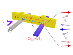 November, 12, 2025, 大阪--大阪大学大学院理学研究科物理学専攻の蒋男助教、新見康洋教授らの研究グループは、東邦大学理学部物理学科の大江純一郎教授、大阪公立大学大学院工学研究科電子物理系専攻の戸川欣彦教授と共同で、スピン流を用いた非局所スピンバルブ測定により、らせん磁性体Cr1/3NbS2のスピン位相と磁気ゆらぎを電気的に検出することに世界で初めて成功した。