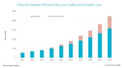 Interact Analysisの最新の分析では、2025 年の市場予測では 8 億ドルの削減が示されており、各主要地域では成長率が低下すると予測されている。この調整は、業界の成長軌道の広範な再評価を反映しており、2030年の収益予測は現在156億ドルであり、以前のより楽観的な見積もりから低下している。その結果、今後5年間の年間平均成長率(CAGR)も26%から21%に引き下げられた。